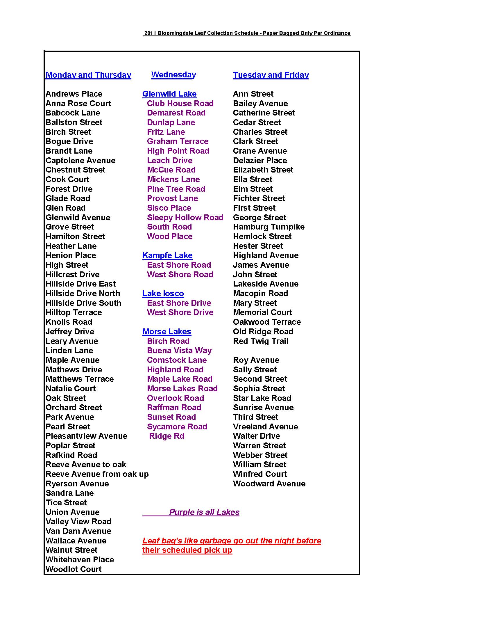 Leaf Season Schedule
