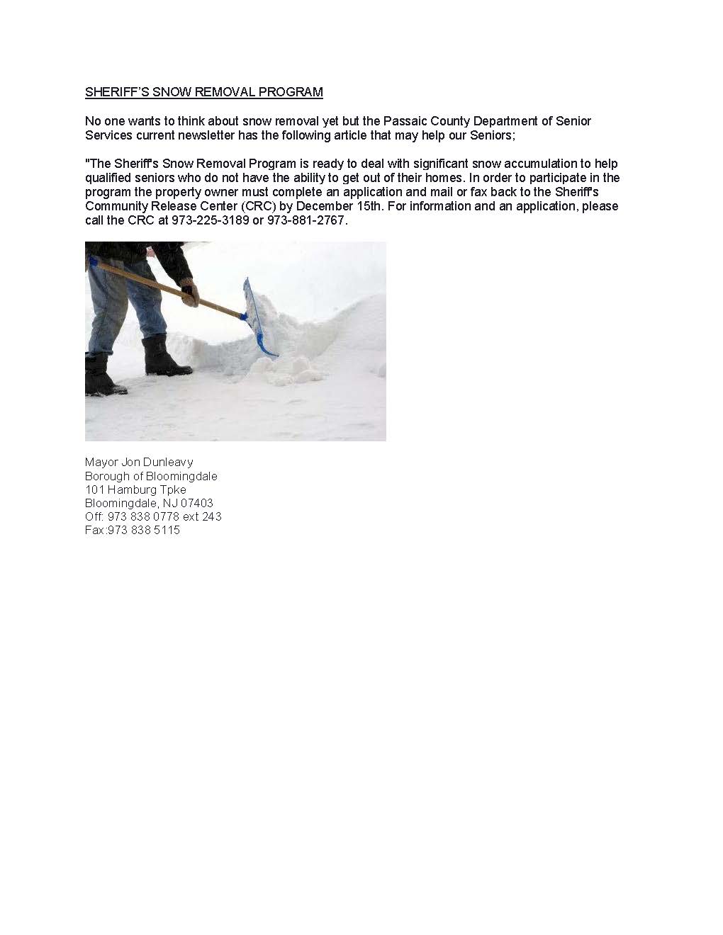 Sheriff's Snow Removal Program