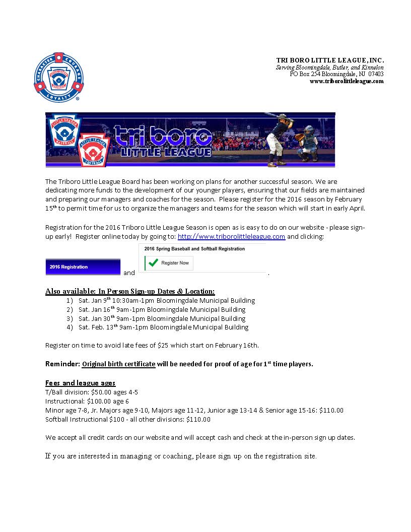 Tri Boro Little League Sign Ups
