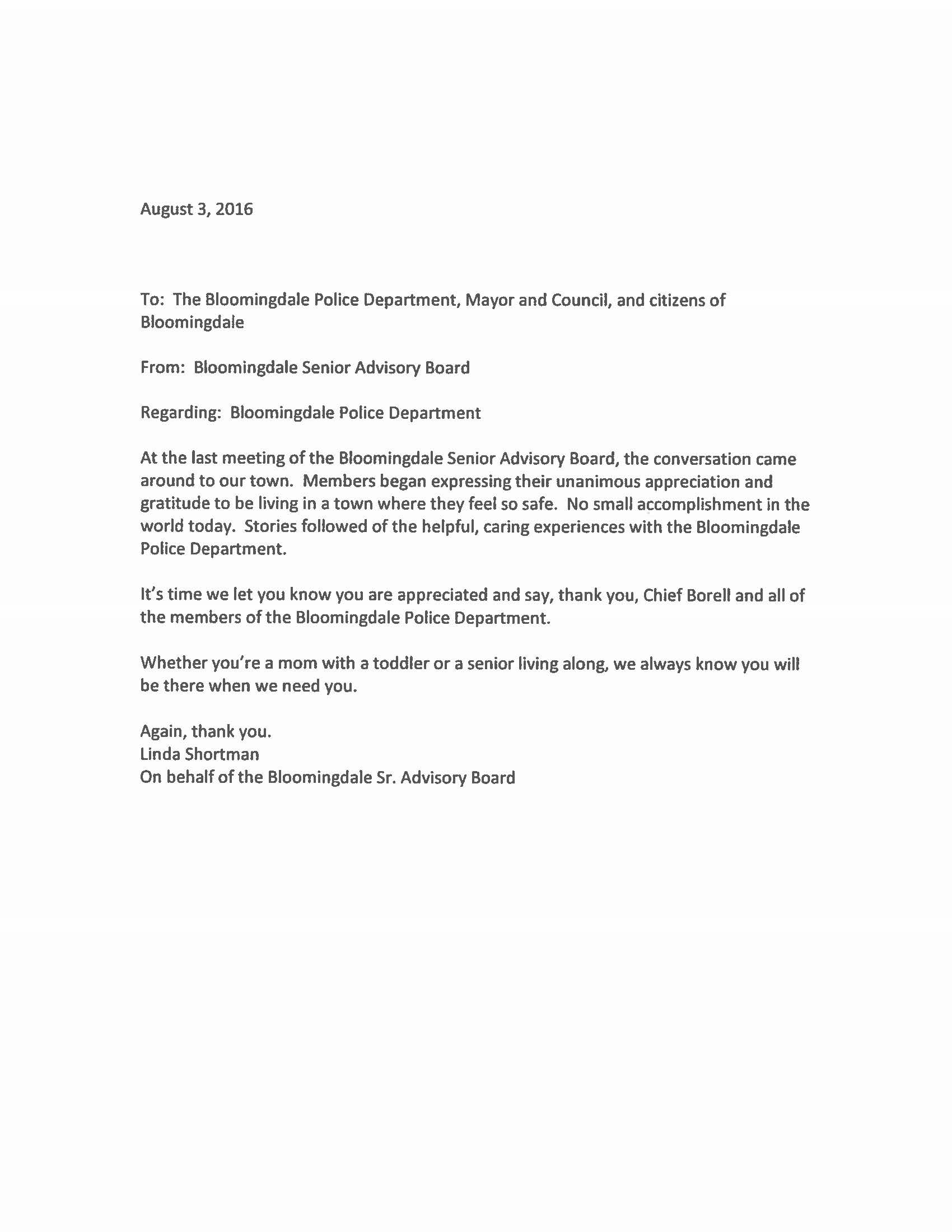 thank you to police department
